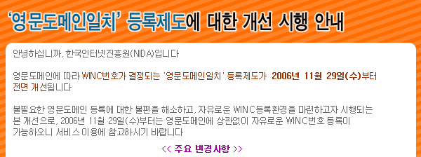 ¸ð¹ÙÀÏÁÖ¼Ò(WINC) '¿µ¹®µµ¸ÞÀÎÀÏÄ¡' µî·Ï°³¼± ½ÃÇà¾È³» |